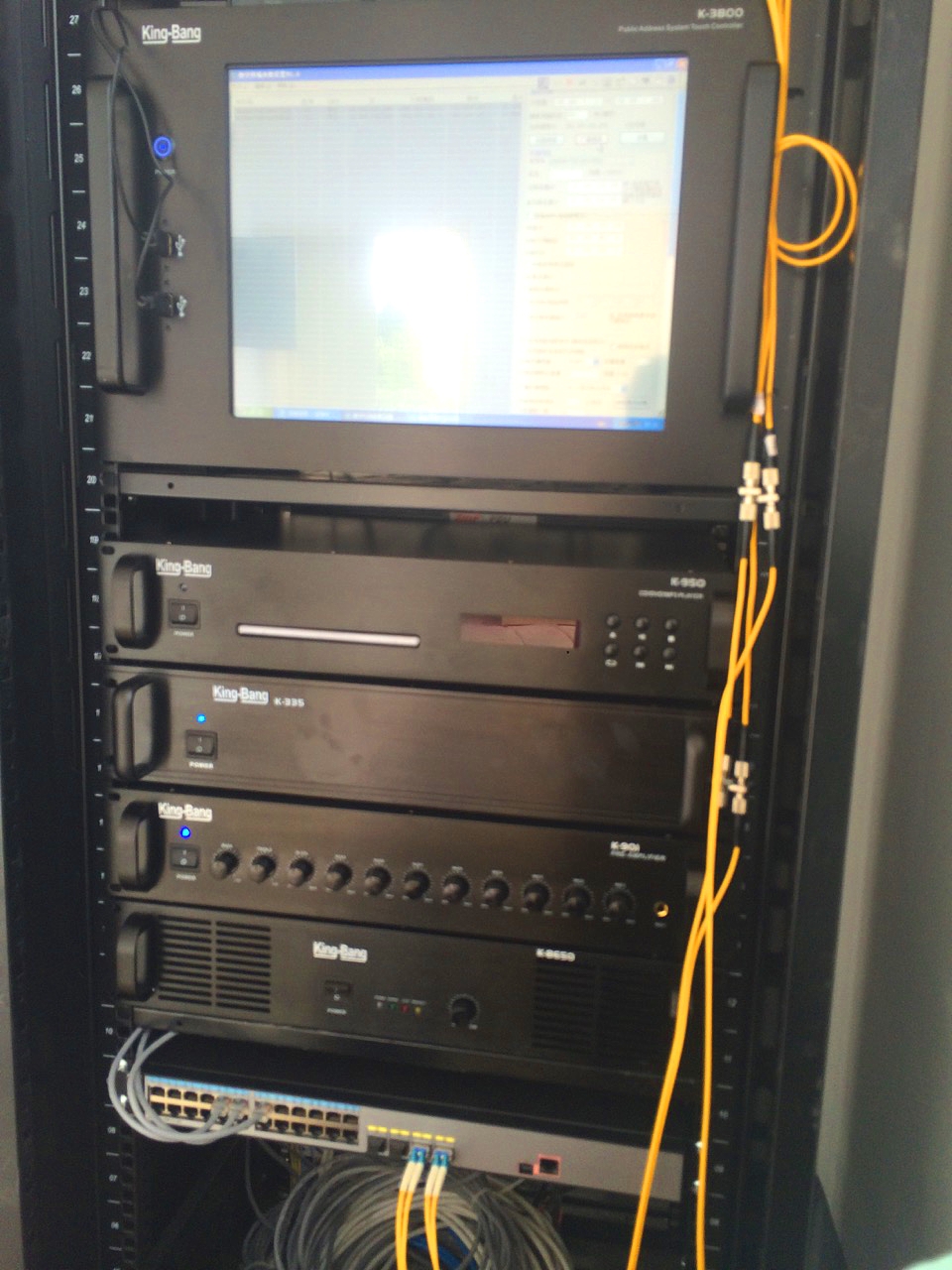 該項目共配置京邦電子(KING-BANG)的校園IP網(wǎng)絡(luò)廣播系統(tǒng),主要滿足學(xué)校的背景音樂播放、廣播通知、教學(xué)使用與緊急廣播等使用需求,整個系統(tǒng)主要由中心廣播機房、遠(yuǎn)程尋呼站、智能電源管理系統(tǒng)、樓道、走廊和校園室外廣播等區(qū)域組成。